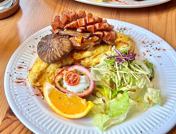 有芝士歐姆蛋、香草雞腿、德式香腸、綜合蔬果生菜